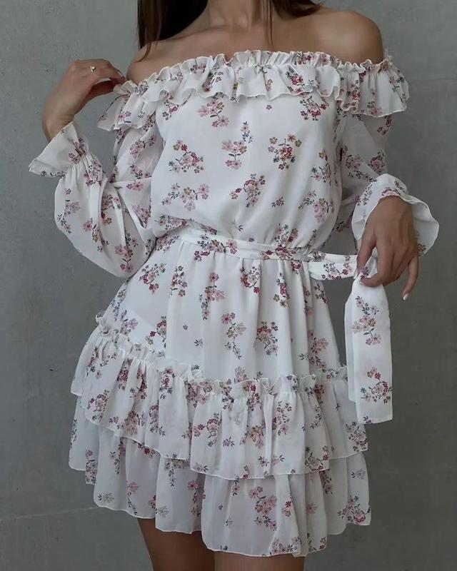 ❗ Новинка ❗ Снова в наличии Сукня 🔥 Мод 168 Размер - 42-44,44-46 Ткань - американский креп 🌈Цвет - белый в цветочный принт 👍👍👍Цена - 1100 грн 💕Весеннее платье станет любимой вещью гардероба молодых девушек и женщин Воланы воздушные в цветочный принт это тренд школьного выпускного, торжественного свадебного приема, дня рождения, вечеринки Открытые плечи, длинные рукава на резинке и приталенный крой создаст сексуальный силуэт 👌
