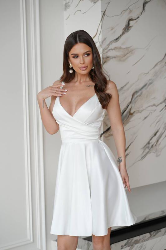 💕💕💕НОВИНКА💕💕💕 Модель 7521 Размер 42 (S), 44(M) 46(L) Цена 1000 грн Атласное платье с длиной выше колен, расклешенной юбкой «солнце», с двойными бретелями. Дальность: 90 см Тканина: Атлас Кольори: чорна, молочна тивар