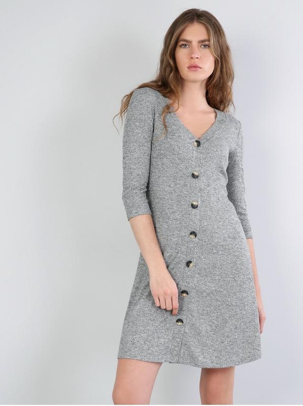 Жіноча сукня-трапеція Colin's прямого крою на ґудзиках. Колір сірий. Довжина міні. Сезон: Весна, Осінь, Зима