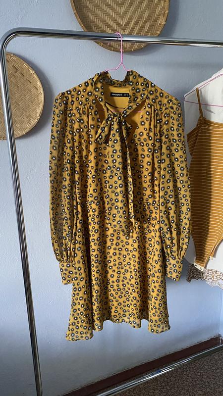 Стильное винтажное платье, на шее можно завязать очень красивый бантик. Размер s ПОТ 35см ПОБ 50см ПОГ 45см Длина платья 90см