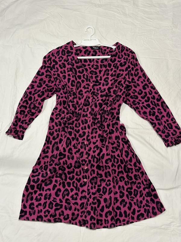 Трендова сукня в леопардовий принт на гудзиках🔥 Цвет - фуксия (что-то среднее между малиной и фиолетовым) очень красивое😍 Размер подойдет на наш украинский 48,50,52 Можно к платью надевать пояс ОГ - 56 см + тянется ОТ - 46-53 см ОБ - 64 см Длина - 93 см Длина рукава - 49 см (3/4 рукав) Платье имеет V-вырез и 11 пуговиц Талия прошита, красиво садится по фигуре Есть отправка безопасной оплатой новой и Укр-почтой ❤️ за всеми вопросами загляните в сообщение