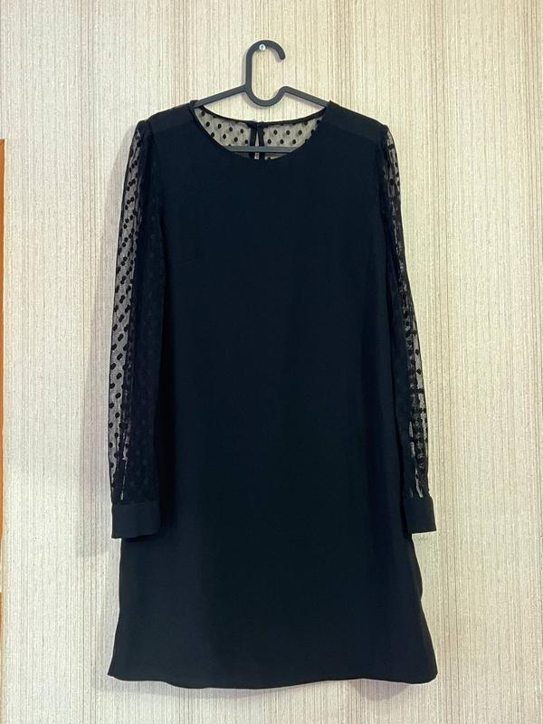 Очень красивое классическое платье. Есть микро-эффект, указанный на последнем фото. Нужно подшить. Замеры: длина - 90 см, рукав - 63 см, плечи - 39 см груди - 46 см, стегна - 51 см.