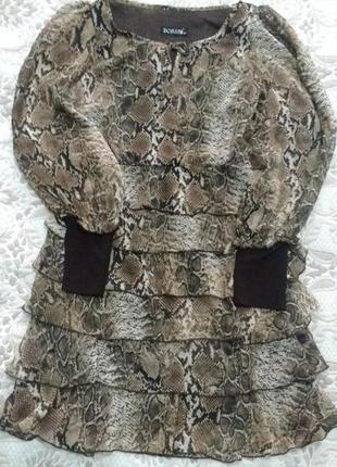 Платье в идеальном состоянии, с оборками. Цвет под питона) шифоновое, подклад стрейч, сбоку на змейке. Длина по спинке 84см. Подойдёт на размер 44-46.