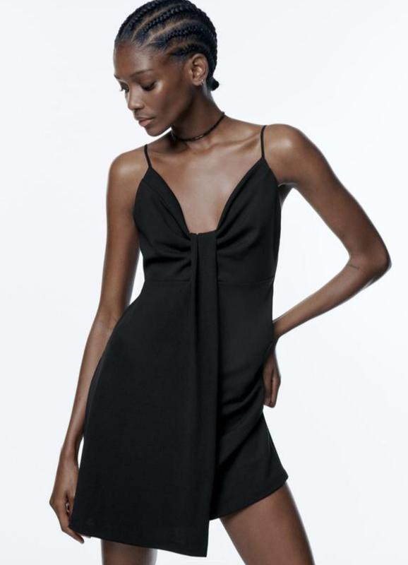 Черное платье мини на тонких бретелях