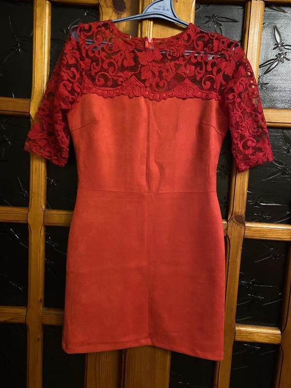 Полки красное платье из замша и кружева в отличном состоянии. Размер - М. Отправка безопасной доставкой.
