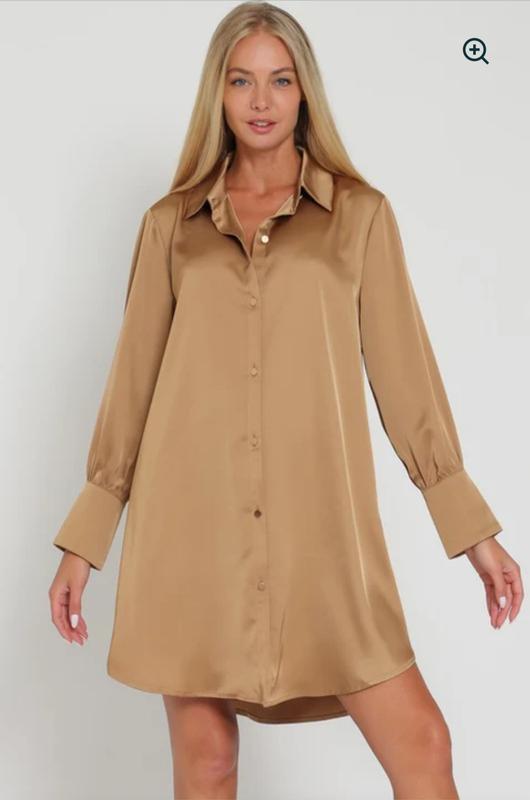 Подчеркните свой стиль с мини-платьем-рубашкой с длинными рукавами и пуговицами. Это платье из роскошного атласа излучает изысканность и элегантность. Длинные рукава и застежка на пуговицы добавляют нотку утонченности, делая его идеальным для любого случая. Оденьтесь так, чтобы произвести впечатление с помощью этого обязательного дополнения к вашему гардеробу.
