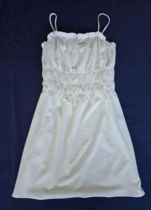 Платье летнее бренда NA-KD, размером EU 36, наш 44. Новая, с биркой. Очень красивый цвет, тепло-белый, камера, нажаль, не передает.Полуобхват талии -36см, длина -80см. По составу 95% полиэстер, 5% эластан. Если надо еще замеры или фото-пишит.