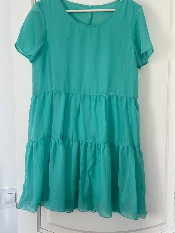 продам летнее платье. в очень хорошем состоянии. размер М-L (небольшой). длина - 89 см, ширина по коме - 46 см. верхний слой - шифон; нижний слой (подкладка) - тонкий трикотаж