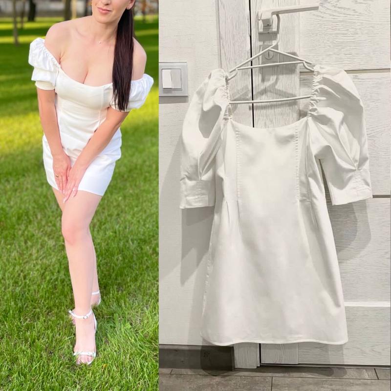 Сукня від Zara з відкритими плечима,в молочному кольорі Підійде на будь яке свято Довжина 63 см Пог 38 см Пос 49 см Тканина тягнеться. Без дефектів