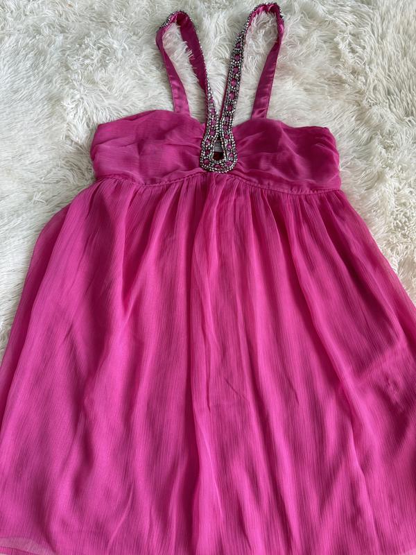 Короткое (длина до колен) розовое коктейльное платье с открытыми плечами