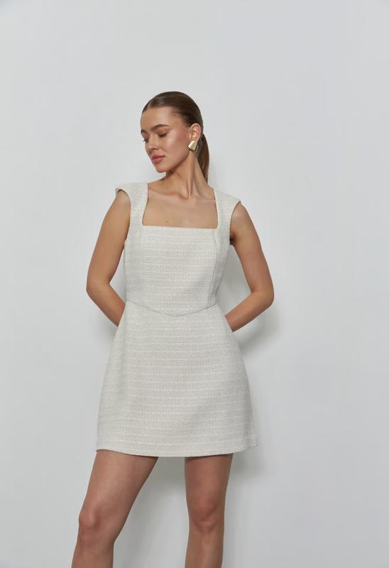 Твидовое платье особого кроя станет ярким дополнением к вашему гардеробу. Вырез и рукава эффектно подчеркнут линию ключиц и плеч, а длина выгодно выделит ноги. Носите в теплую пору с элегантными маленькими сумками и минималистичными аксессуарами, а в прохладную — стильно сочетайте с пиджаком или тренчем контрастного цвета и обувью на каблуке. Или даже с сапогами, ведь это платье дает пространство для маневров. Она без бирки, но новая (некто ни разу не одевал ее)