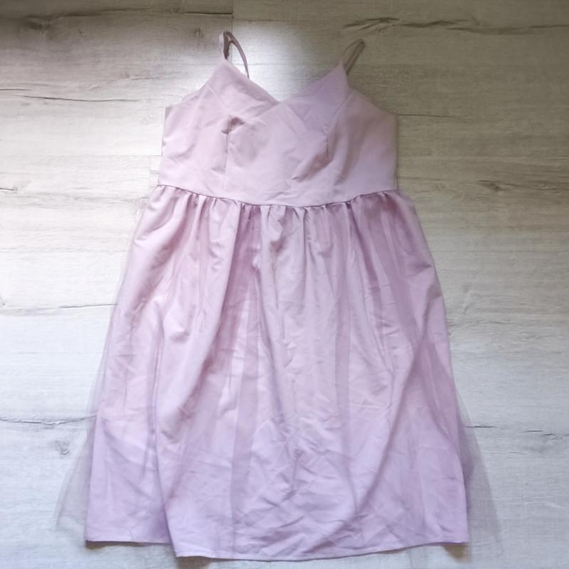В ідеальному стані сукня, шилась по власним замірам, тому орієнтуватися можна на них. Тканина 100% котон, юбка покрита фатином зверху, в сукні вшиті чаші для грудей, на застібці. Заміри: груди 48 см, талія 47 см, бедра прямі ( вільні 60 см) , довжина 90 см