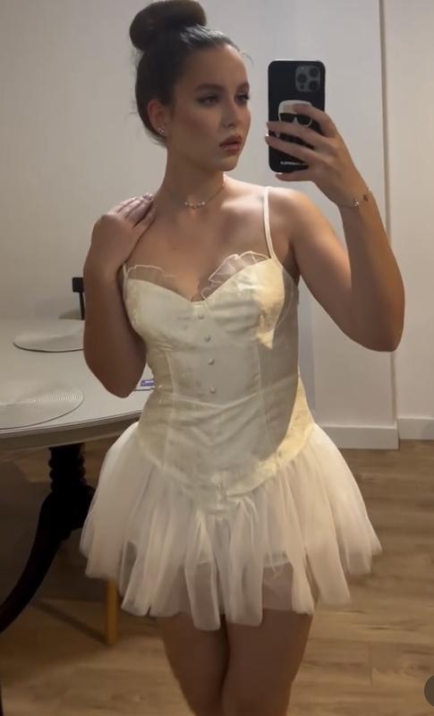 Описание товара: Шикарное белое мини-платье с юбкой-балеткой имеет вырез в форме сердечка с прозрачными оборками и изящными бретельками. С затянутой талией в стиле корсета, деталями на пуговицах спереди и мини-юбкой в стиле балетки это текстурированное мини-платье игриво и элегантно. Сочетайте его с любимыми ботинками на платформе или каблуками с ремешками, чтобы завершить образ.внутри вшиты шортики. Размер С Цена на сайте 40 € Продам дёшево! Перевести СТИЛЬНЫЕ ДЕТАЛИ Тип посадки: обычный Линия талии: средняя Подкладка: с подкладкой Длина: короткая Вырез: сердечко МАТЕРИАЛ Состав: 100% полиэстер Материал: сетка ИНФОРМАЦИЯ О ДИЗАЙНЕ Повод: на открытом воздухе, праздник Тип узора: Conversatio Детали узора: цветочный Детали одежды: оборка
