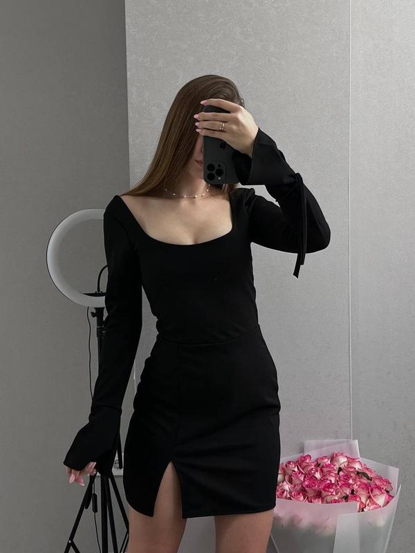 Сукня🥰 Мод: 856-720 Розміри: 42-46 Тканина: крепдайвінг Колір: чорний Ціна- 520 грн🔥 Довжина від плеча - 82 см Рукав від плеча - 65 см Груди - 80-96 см Талія - 58-74 см