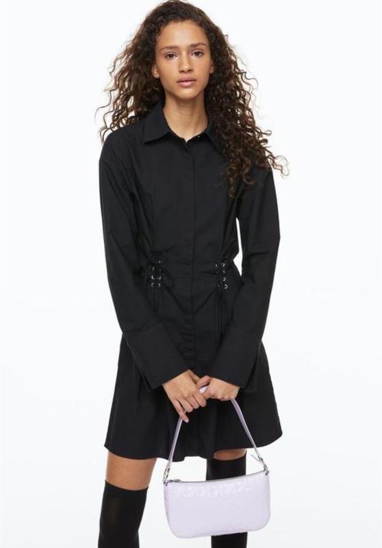 Платье H&M черного цвета На поясе декоративная шнуровка, удлиненный рукав с разрезами Подойдет на размер XS/S Стан - идеальный
