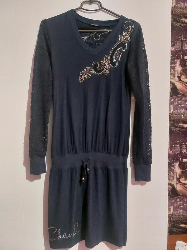 платье на поясе с резинкой.Коротенькое.На рукаве прозрачные кружевные дырочки.Класно тянется
