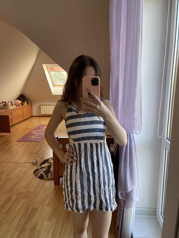 Красивое милое платье. Можно ходить как по городу, так и на пляж. Имеет кружево, на фото видно. Достаточно короткое, более крупные размеры точно не подойдет. Спереду коротше, ззаду довше. Состояние новое, бренд Kidlo by Katie