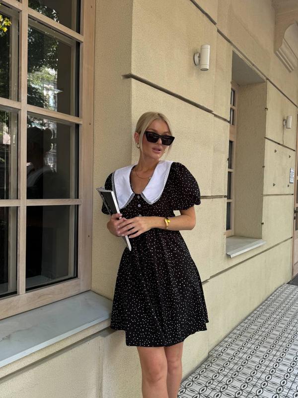 Сукня арт. sat. 5515 Тренд у цьому сезоні - сукні з білим коміром Розміри: S, M, L, XL Тканина: софт Супер якість