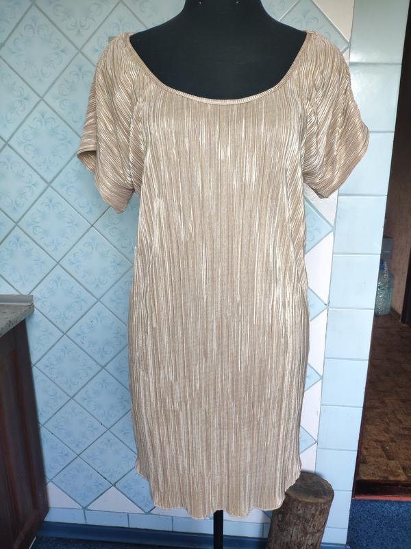 Изысканное платье плиссе золотистого цвета от River Island. Нова. Полностью с бирками. Размер 12(M) Свободного кроя. Очень элегантная. Высылаю безопасной оплатой, после платой. Новая почта, Мост и Укрпочта.