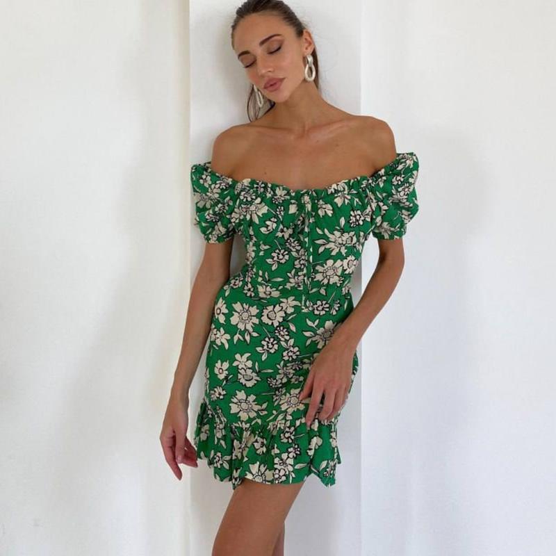 Платье мини в ромашку зеленая синяя