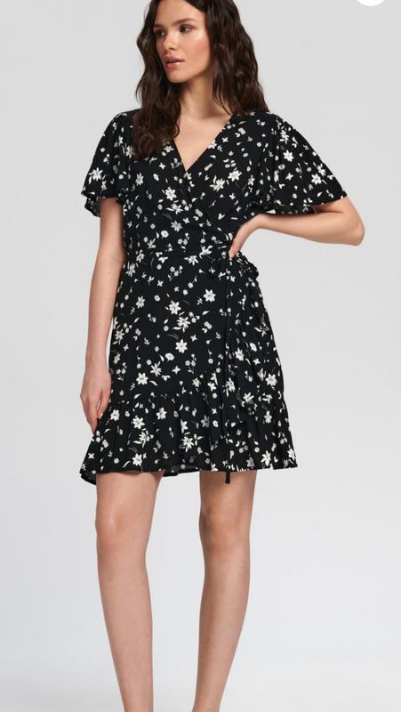 довжина міні V-подібний викот квітковий візерунок прикрашена оборками декоративна зав’язка
