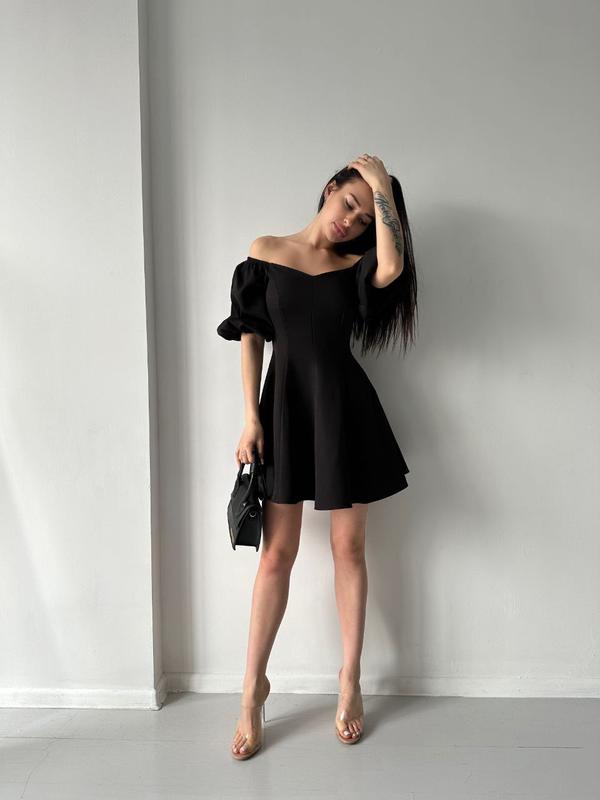 Платье арт. ryab. 517 Тканина: костюмка Размер: 42-44, 44-46 Цвета: черный, молоко Влюбит в себя с первого взгляда. Невероятно нежное платье, напоминает весенний цветок. Качественная ткань и пошив. Рукавчик можно спускать с плеча, делая образ романтичным.