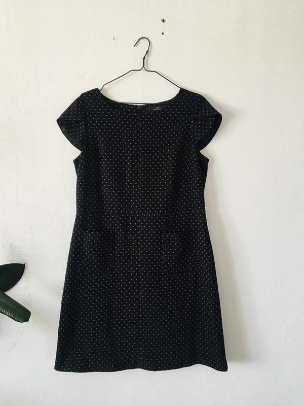 Короткое платье из костюмной ткани с благородным принтом на подкладе. Сзади застежка молния. Размер eu 44