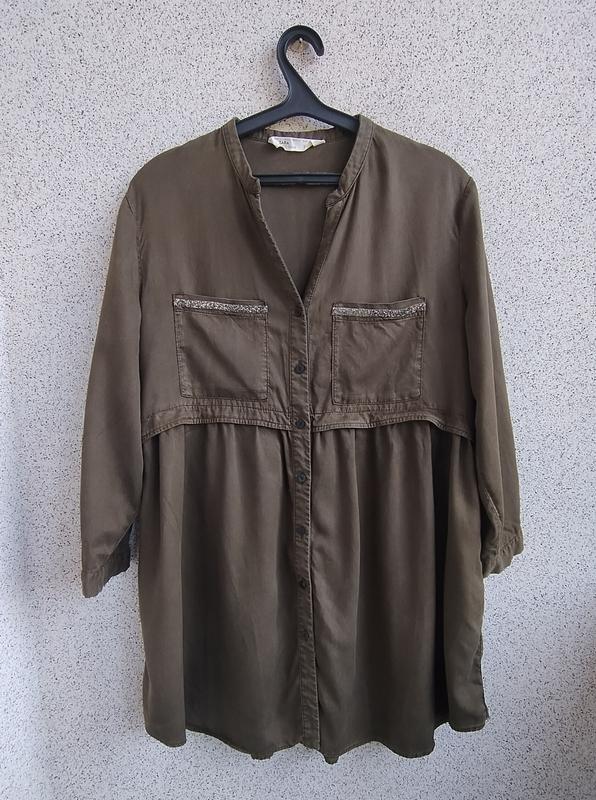 Сукня туника ZARA Made in Morocco Цвет: Хаки (Оливковая) Состав Размер 40/XL/50 Длина изделия см Длина рукава с манжетом см Ширина манжети см Ширина рукава зверху см Ширина рукава по середине см Ширина рукава по низу см Ширина плечей см Обхват шеи см Полуобхат груди см Полуобхат груди см Полуобхат бедер см Стан: 5/5 Все фото реальные