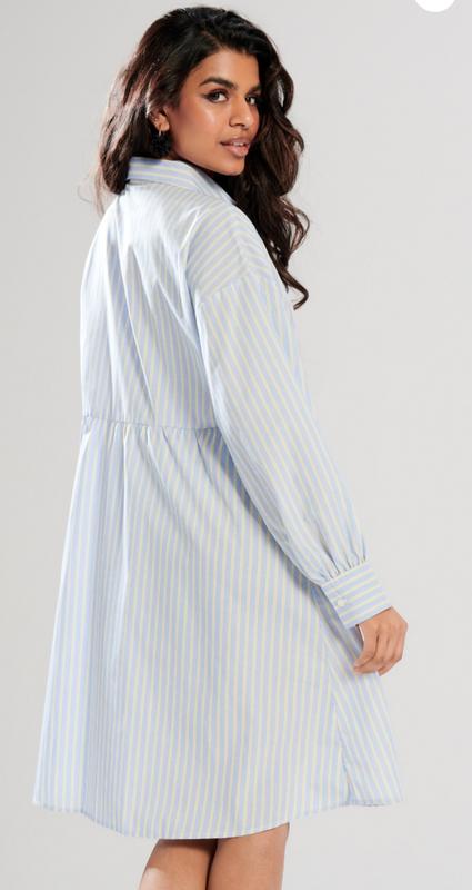 длина мини классический воротник длинные рукава застежка на пуговицы узор в полоску Материал:65% полиэстер, 35% хлопок