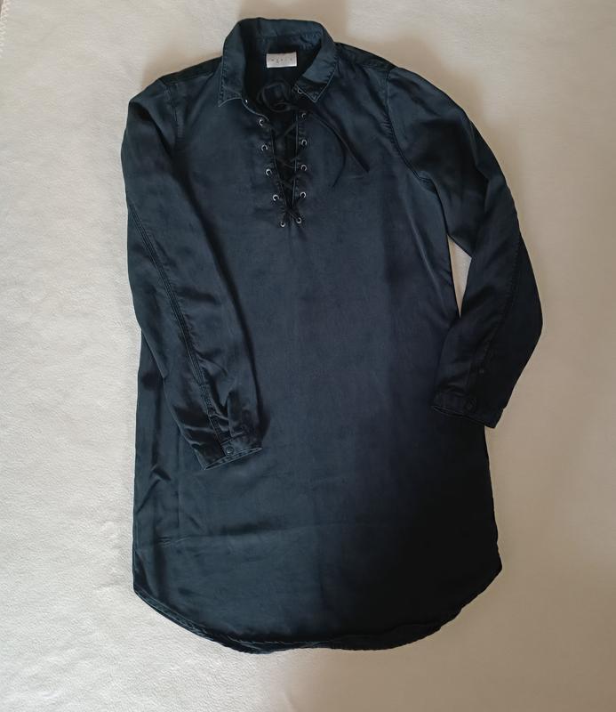 платье с длинным рукавом, черного цвета, прямого кроя, на размер 44 (S). Ткань: лиоцелл 100%.