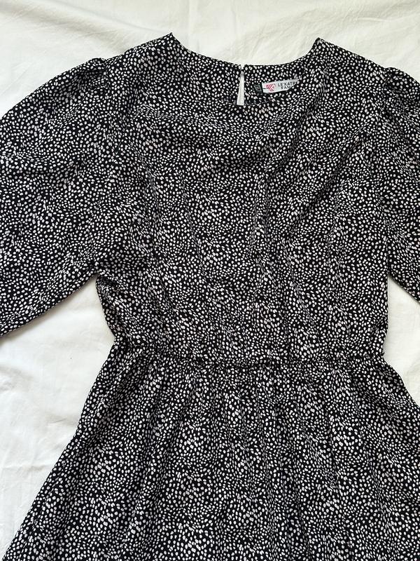 Платье из софта, легкое и приятное к телу, не парит Размер по бирочке ХЛ (подойдет на Л-2ХЛ), ткань тянется Сукня НОВА !!! Замеры ОГ - 50-57 см ОТ - 37-54 см (на резиночке) ОБ - свободно Длина платья - 97 см (на мой вырос 160 см до колена) Рукав 38 см (3/4, воланчиком) Платье отлично садится по фигуре, красиво подчеркивает талию и скрывает все недостатки 😍 Платье черное с светло-пудровыми пятнами) ✅безпечна оплата ✅отправка новой и укроштой