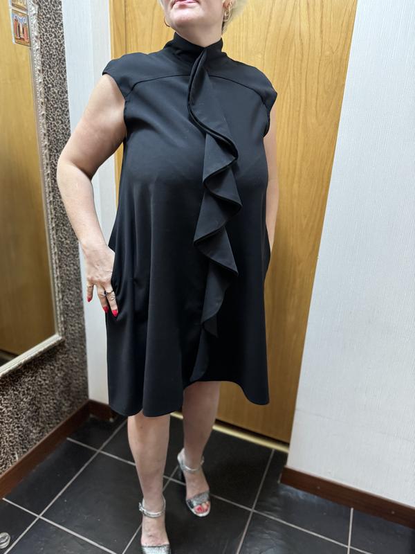 Платье черная,42р. Классный фасон солнце. Не носила, состояние новой вещи. Длина 100. Грудь 55 Талия 65 Бедра 70.