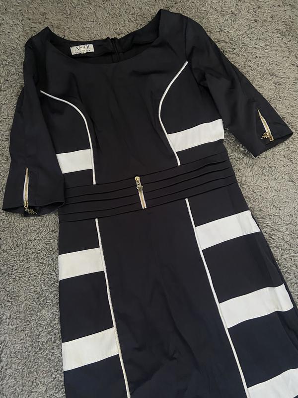 Женское повседневное платье, черного цвета, сзади имеет замочек и небольшой разрез) также на рукавах и по середине есть красиво дополняющие образ замочки. размер 46, но маломерит, подойдет также и на S по дополнительным замерам, убедитесь в личные сообщения