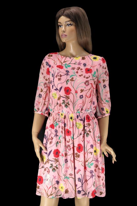 Брендове плаття з легкої віскози "Gant" з квітковим принтом. Розмір uk8/eur36. Застібається ззаду на ґудзик, талія на гумці, на підкладці. Розмір uk8/eur36, може підійти й на невелику М-ку. Заміри: -НОГ — 48 см; -НОТ — 34 см (тягнеться до 50+ см); -НОС — 65 см (спідниця вільного крою); -довжина рукава — 38 см; -довжина сукні — 91 см. Без дефектів. В ідеальному стані! Параметри манекена, на якому зроблено фото: -зріст — 185 см; -обхват грудей — 87 см; -обхват талії — 64 см; -обхват стегон — 92 см.