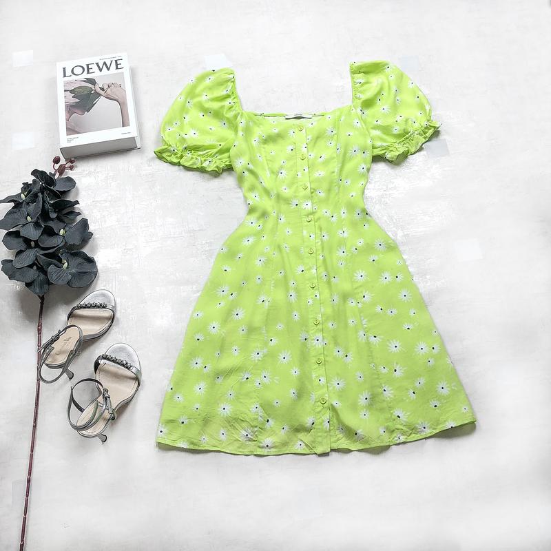 Платье george салатового цвета в цветочек на пуговицах с пышными рукавчиками