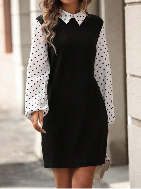 #Сукня Артикул: 541-3306 Цвет: черная белая Размер: 42-44, 46-48, 50-52 Материал: костюмка, рукава и воротник-софт Нежное платье из костюмной ткани, прямого силуэта, приталенное. Рукава из софта, на резинке. Воротник на стойке, застежка сзади на пуговицу.