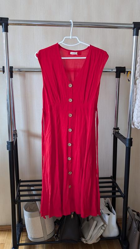 Легка літня сукня червоного кольору, вільна, на таліі пасок. Чудово на кожен день. Розмір С, але йде на М