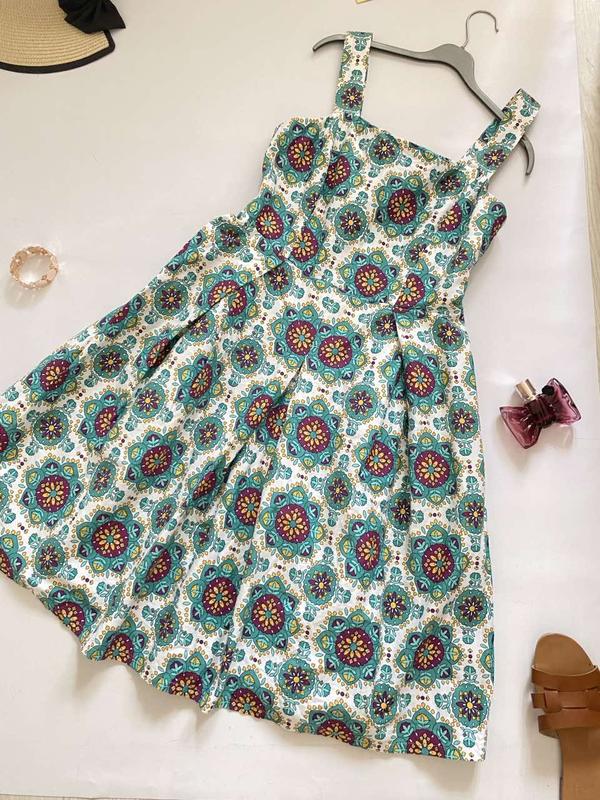 Роскошное летнее платье с квадратным вырезом и ярким принтом платье хлопок пышная юбка р.s
