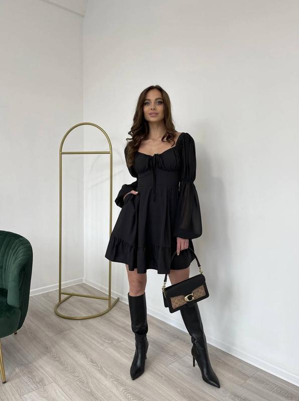 Платье в котором каждое движение женственно сливается с легкостью шифона и благородством шелка. Платье 2970 Размеры 42-46,48-52 Длина мини 87см По талии ширина регулируется. Юбка расклешенная 140см Размер 42-46 обхват груди 90-96см, размер 48-52 обхват груди 96-108см. Тканина шифон, софт. В белом цвете по спине подкладка. В черном, белом цвете.
