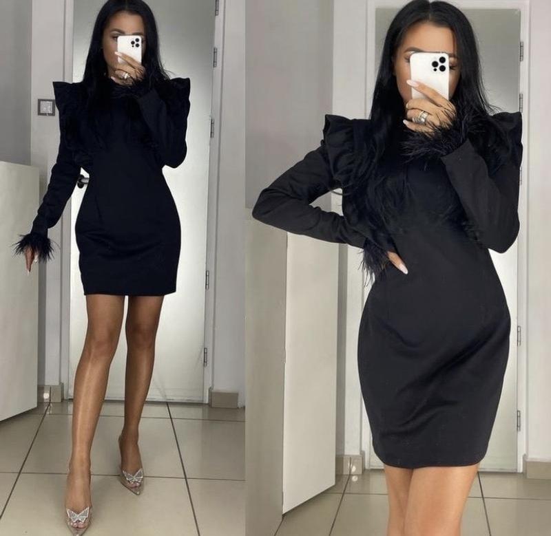 Продам очень крутое платье футляр Пошитое из плотного качественного стрейча трикотажа декорировано перьями и рюшами Очень элегантное, одевала один раз Размер М, можно и на маленькую Л