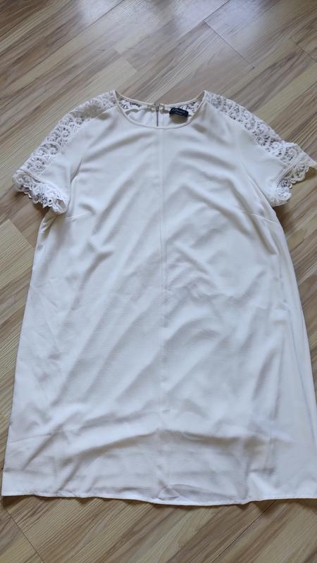 Белое платье,дожатие 89 см.,ПОГ -64 см.Зовем немного расширяется к низу.Нажаль,фото не передает какое оно, собственноручно, красивое