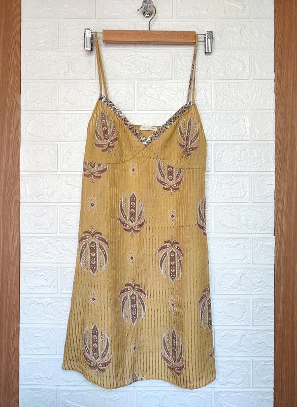 качественное невесомое платье-комбинация на бретелях от "Massimo Dutti"/пишут размер М - наш 40-42рр. Вещь б/у - состояние отличное. Требует незначительной глажки. цвет: горчичный + золотистые полоски, принт состав: 55% шелк, 45% хлопок декор: пайетки, мелкие стразы качественный крой!! Замеры: - ПОгрудей - 39см (с левой стороны есть молния) - длина платья от подмышек к низу (по боковому шву) - 59см - макс. длина (вместе с бретелями) - 82см /+ бретели регулируются ФОТО НА ТИЛИ НЕ МАЮ 💳 сплата на картку приват 24 👉 отправка за счет покупателя 🚫 ПОВЕРНЕНИЕ НЕ ПРЕДУПРЕЧЕНО 🚫