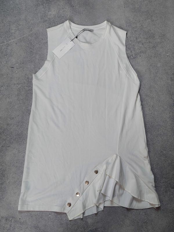 Повседневное платье оверсайз, декорированное оборками внизу. Длина ниже колен.
