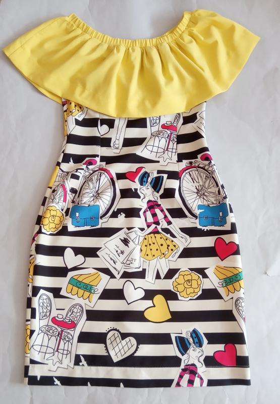Дуже гарна яскрава та стильна сукня від турецького бренду в ідеальному стані в розмірі 38. Загальна довжина-80см НОГ-35 - 39 .Горловина на резинці з оборочкою. Можна носити як на плечах так і приспущеною. НОТ- 33-34 НОБ- 43-45 . Збоку сукня на змійці.