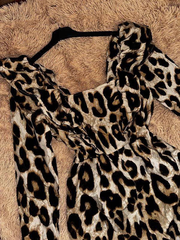 Красивое платье тигрица с рюшами и рукавами, сзади замок, длина 90, длина рукава 62, ог 52, от 45. Об -55