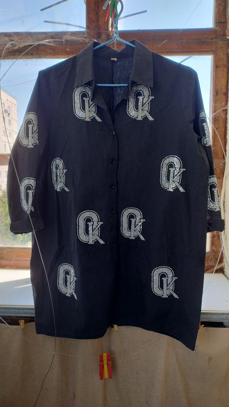 Стразы только спереди, застегивается на пуговицы до середины, можно спокойно как оверсайз на М и Л. Местами нет страз но вообще не заметно, потому что блестят как у кота яйца🤣 Пог 58 Поб 61 Длина 80 Рукав 53 Плечи 40
