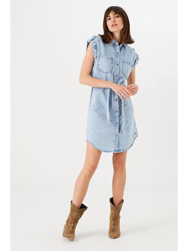#сукня #плаття #сукня_сорочка #джинс #джинсова_сукня #сарафан #джинсовка #бавовна #denim #jeans #cotton Брендова трендова джинсова легесенька сукня-сорочка стримано декорована металічними стразами по кокеткАХ від бренду DENIM Со неодмінно стане однією з найулюбленіших та найкомфортніших речей у вашому літньому гардеробі ❗ 👍 Застібка на кнопки, має 2 нагрудні кишені. Можна носити з декоративним шнуром-паском. Склад тканини: 100% - БАВОВНА/ СОТТОN! SIZE: 10/38 /М/L ПАРАМЕТРИ виробу, в спокійному лежачому стані: ПОГ - 48 см; ПОТ - 45 см; ПОБ - 50 см; ширина спинки по КОКЕТЦІ - 36 см; довжина рукава - 11 см, та трансформується в коротший; Довжина виробу - 90 см по спинці, по бокАХ - коротше, та має розрізи 6 см.