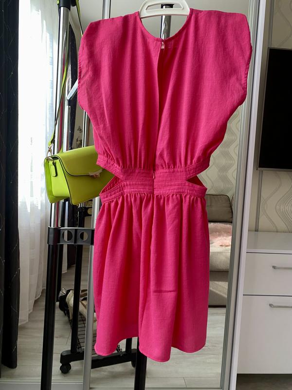 Яркое платье, красивое фасона с открытой талией и разрезом на спинке
