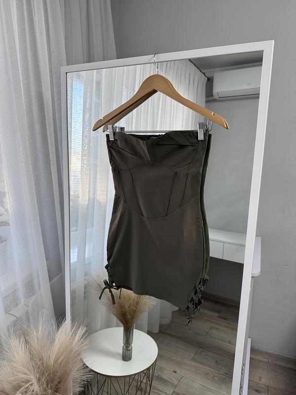 Невероятная Bodycon dress PrettyLittleThing 🐍 Соблазнительное мини держится на груди, в цвете хаки, платье должно красиво обтягивать тело. ▪️Размер: UK 10 (M) ▫️Замеры: длина 56 см, ПОГ 35 см, ПОТ 30 см, полухват бедер 38 см (ткань тянется) 🔖Состав: 75% viscose, 21% nylon, 4% elastane ✔️нова.