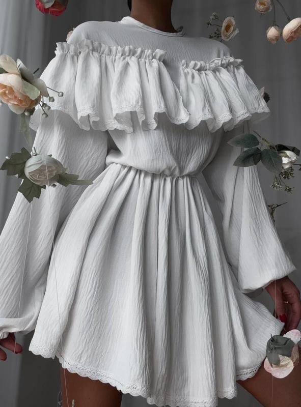 Платье короткое летнее легкое с баской оверсайз на длинный рукав на резинке качественная м...